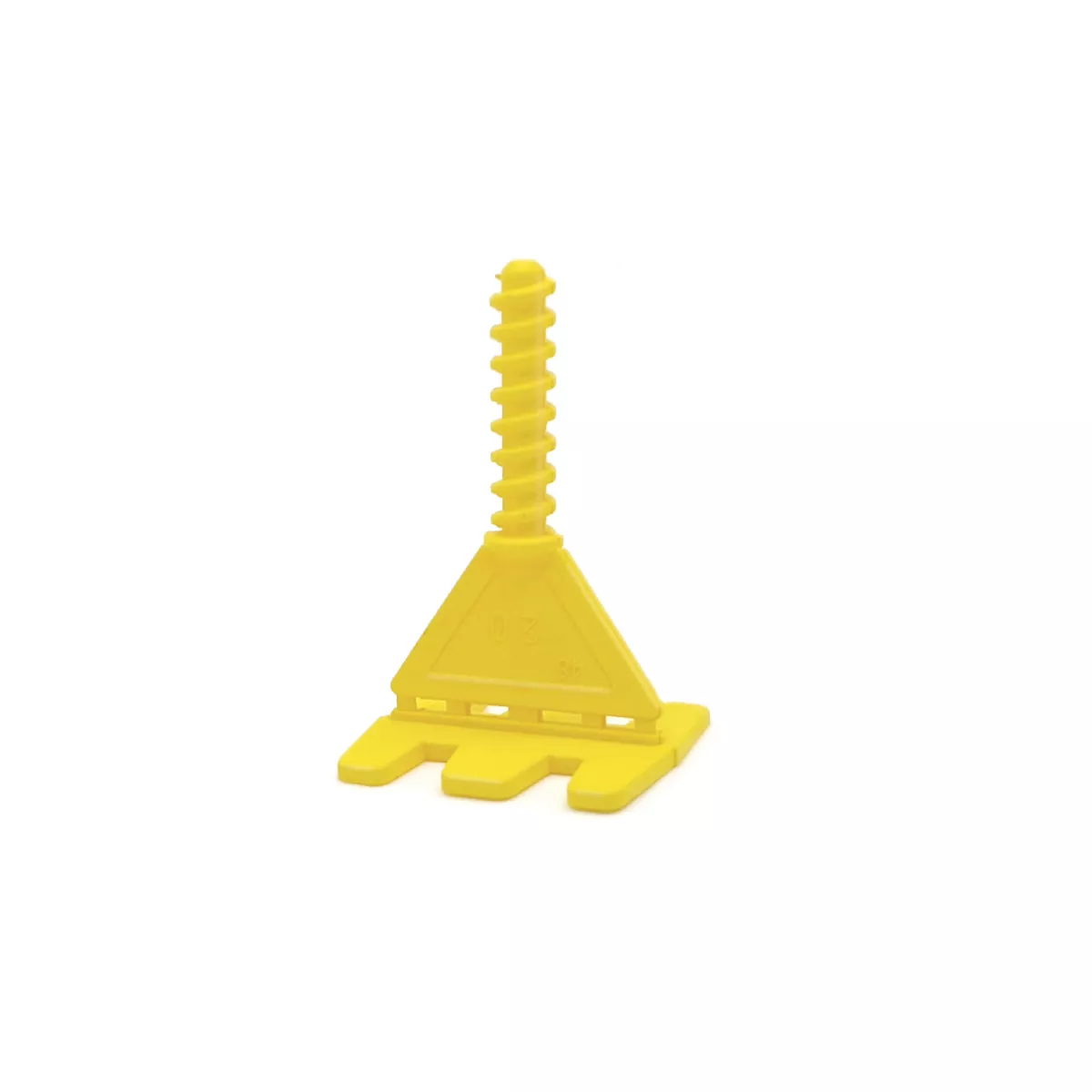 El sistema de nivelación con tuerca y tornillo permite alinear cerámicos y porcelanatos de gran formato, soportando piezas pesadas de 3 a 14 mm de espesor.